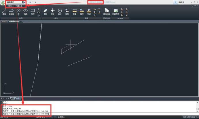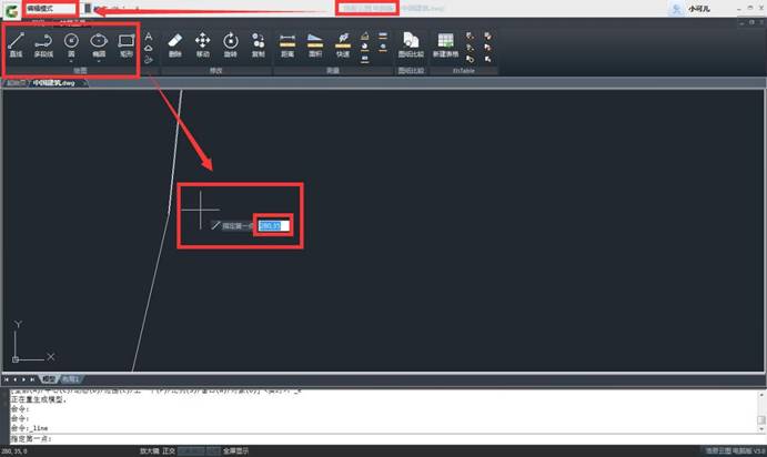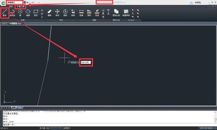 如果我們想要根據(jù)坐標(biāo)繪圖,確定繪圖點的坐標(biāo),只需要直接在鍵盤上輸入X,Y軸的坐標(biāo)即可,中間用逗號分開,如下圖所示:
