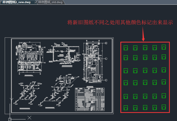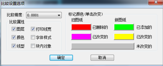 ⑥點(diǎn)擊【比較】按鈕,開始比較,會將兩張圖紙的圖通之處用不同的顏色標(biāo)記出來,完成比較。