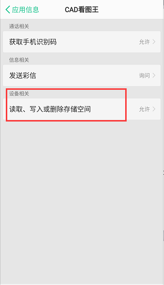 ③點擊設備相關的讀取、寫入或刪除存儲空間,將其設置為詢問或著允許;