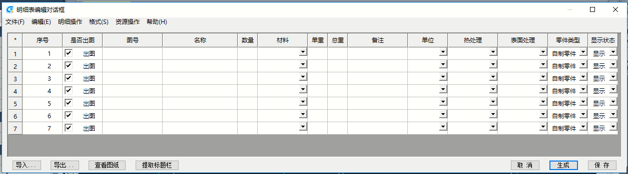 在CAD機械軟件繪圖過程中,在完成序號標注和明細生成后,需要對明細表進行數據導入與導出等處理。