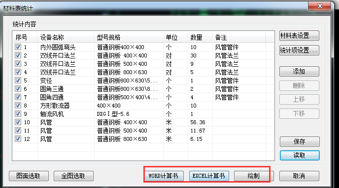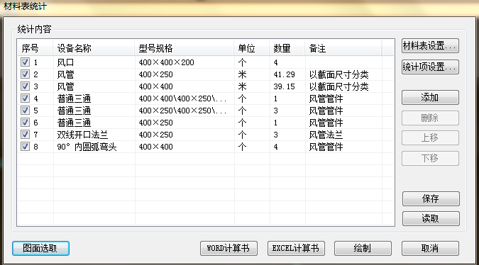 打開后,材料表數據自動讀取到當前,可以修改數據。生成材料表。