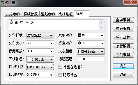 可以直接雙擊圖中已繪制好的材料表的表格線。則進入表格設置編輯界面。