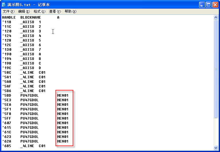 回車確認后,所有選擇的屬性塊的屬性信息已經就都提取到文本文件中。