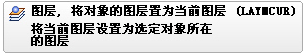 2、通過選擇圖中的對象來設置當前層。如果不知道圖層名,或者圖層特別多,但要將新畫圖形放到跟某個圖形的同一圖層上,可以點“將對象的圖層設置為當前”按鈕或輸入LAYMCUR命令,然后在圖中選取某一個圖形即可。如下圖所示。