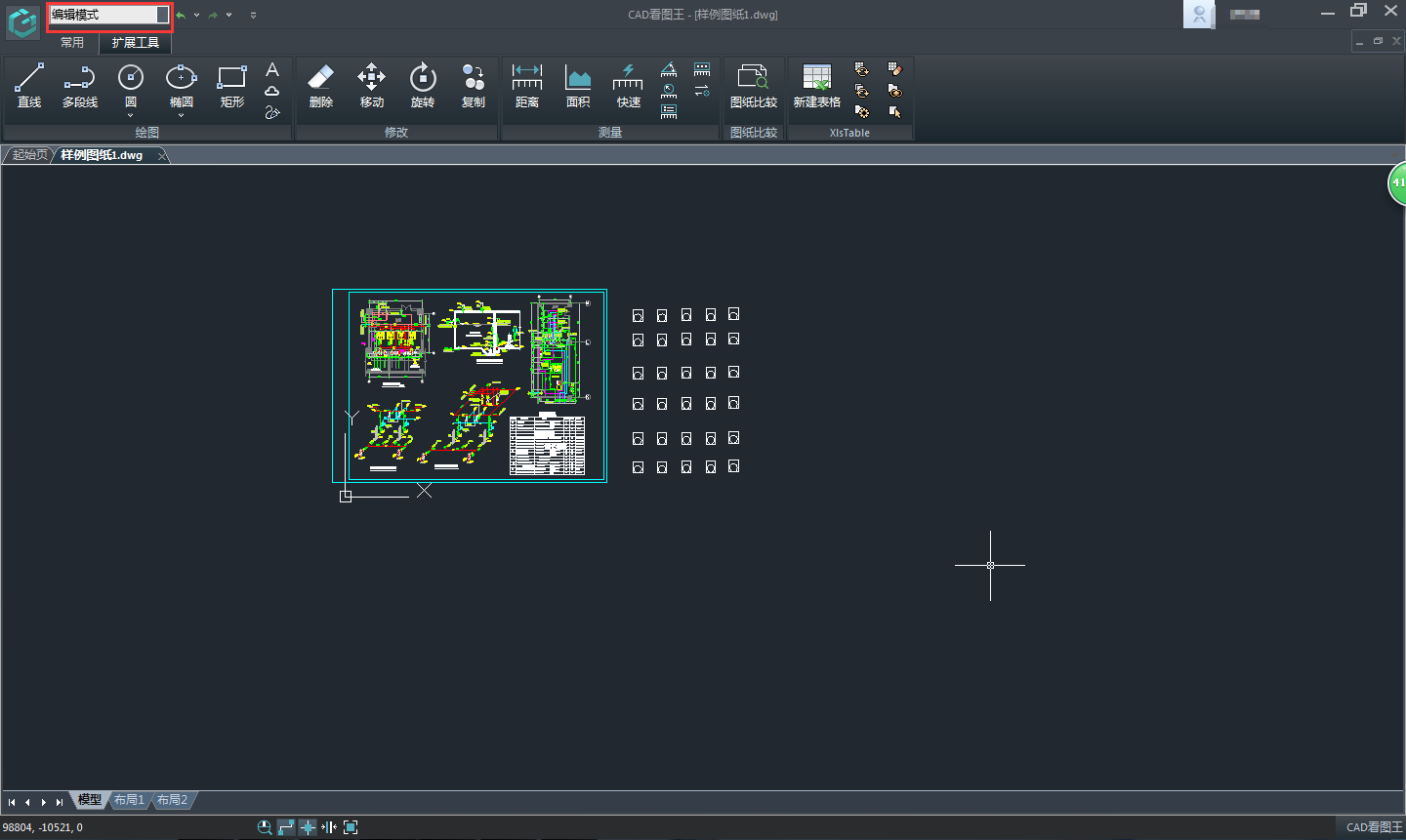 浩辰CAD看圖王是一款大家可以輕松看圖,編輯圖紙的看圖軟件,目前被廣大用戶所使用,很方便、快捷。軟件不僅有手機(jī)版,還有電腦版和網(wǎng)頁版,今天就為大家簡單介紹下浩辰CAD看圖王電腦版的相關(guān)功能使用。軟件有覽圖模式和編輯模式,覽圖模式,做到了快速打開圖紙即可瀏覽,方便又快捷;軟件的編輯模式下,是為了方便大家進(jìn)行一些簡單的編輯操作,與常用的編輯工具和擴(kuò)展工具;常用工具包括繪制移動(dòng)、縮放、圖層管理等,擴(kuò)展工具包括直線、多線等的繪制、文字編輯、圖紙比較等。