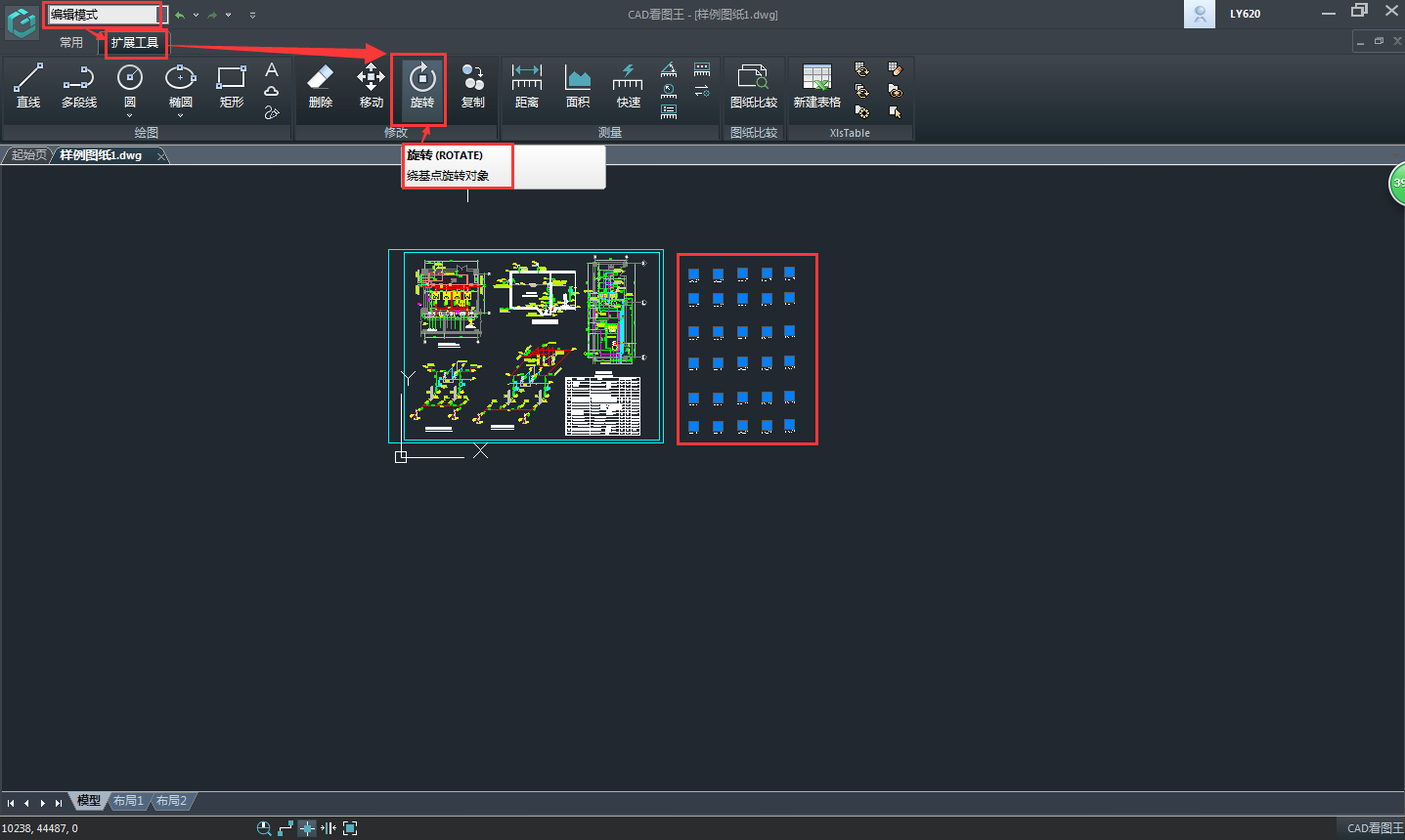 如何使用浩辰CAD看圖王的旋轉(zhuǎn)功能?