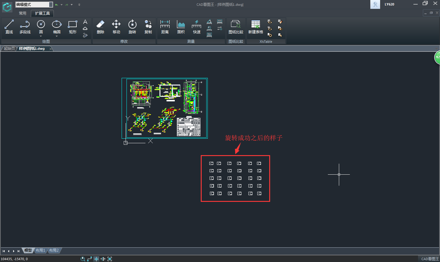 4、圖紙旋轉(zhuǎn)成功。