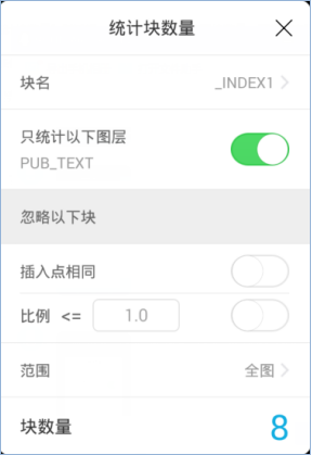 插入點相同:如勾選,表示插入點相同的塊不統計。