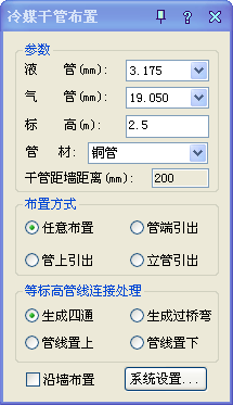 1、可以修改冷媒干管標高、液管氣管尺寸和管材等參數(shù);