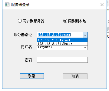 ④再次登錄時,路徑和用戶名的下拉菜單中顯示歷史登錄信息,編輯框中顯示上次登錄成功時使用的信息。