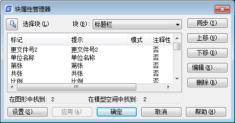 在性文字編輯對話框中,可以定義、編輯或刪除屬性。對于每一個選定塊,屬性列表下的說明都會標識在當前圖形和在當前布局中相應塊的實例數目。