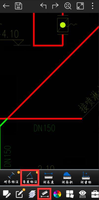 浩辰CAD看圖王→高級制圖模式→測量→角度標注: