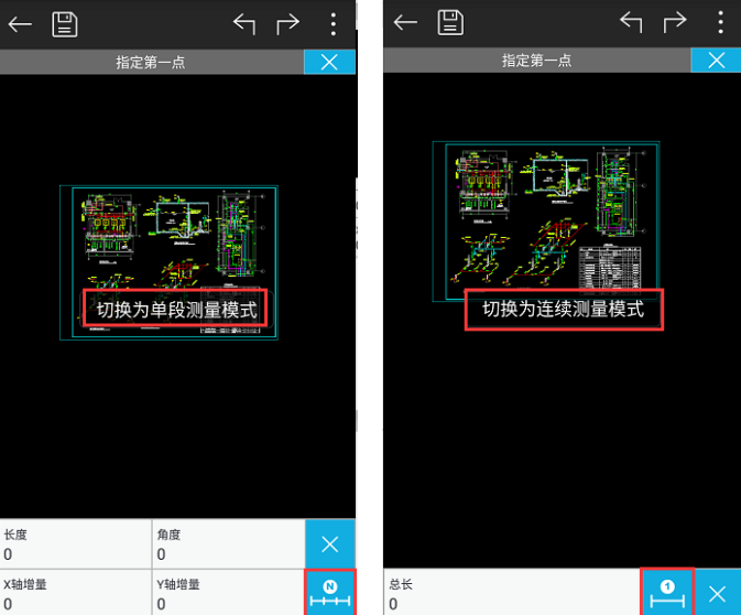 當我們在使用手機看圖紙的時候,很多情況下都會使用到測量長度的功能,但是測量長度又可以分好多種,有是我們只需要測量一段距離,測量完就結(jié)束,有時我們需要測量每段的距離,并且在測量結(jié)束的時候,可以計算出測量的總和是多少,這些都是我們平時使用測量時的常用功能,浩辰CAD看圖王為了滿足大家的使用需求,在測量功能中設(shè)置了單獨測量和連續(xù)測量,這樣,我們在測量的時候,可以根據(jù)自己的測量需求選擇測量的方式。那么具體該如何操作呢?今天就為大家簡單的介紹下測量的具體操作過程,如下所示: