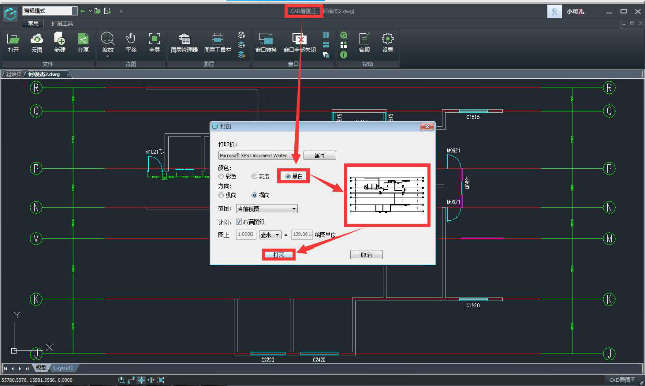 如何使用浩辰CAD看圖王將DWG文件打印成黑白圖片?