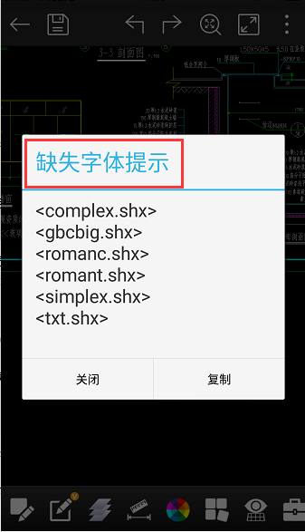 2、打開圖紙的時候會提示缺少的字體樣式;