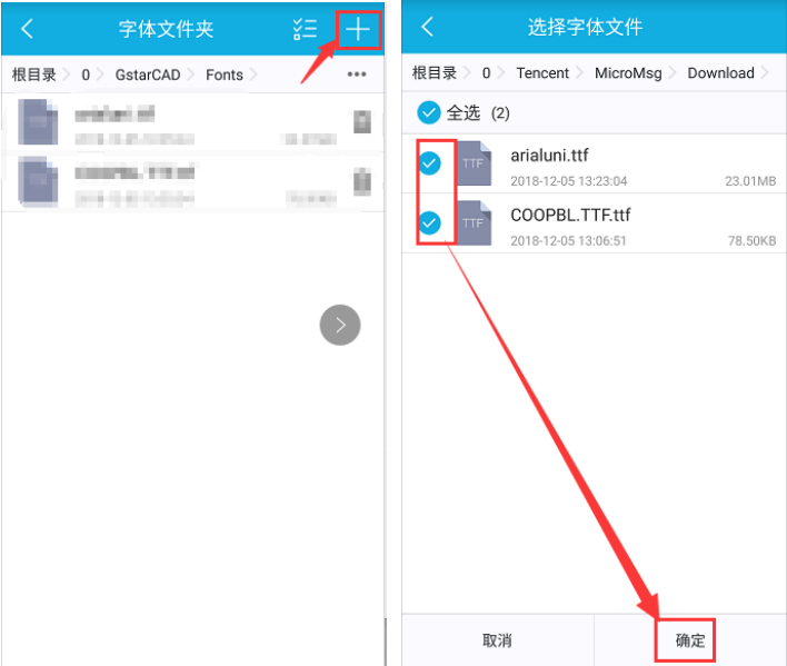 缺少字體這種情況在很多軟件中都會遇到,因此,當出現缺少字體的情況,大家千萬不要慌,這個問題是可以解決的。之所以缺少字體,是因為繪圖者使用的字體,在浩辰CAD看圖王中沒有,我們可以通過將缺少的相關字體下載到手機上,這樣,在打開圖紙的時候,就會調用我們下載的字體,有了字體,打開圖紙的時候就不會出現問號字體或者不顯示字體了。那么具體該如何添加缺少的字體呢?具體的操作步驟如下所示: