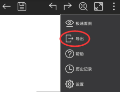 Step 1: 用浩辰CAD看圖王打開圖紙后,點擊右上角的“…”,菜單項中選擇“導出”;