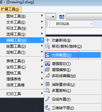 1、選擇浩辰CAD在擴展工具中的“大樣截圖”菜單,如下圖所示。