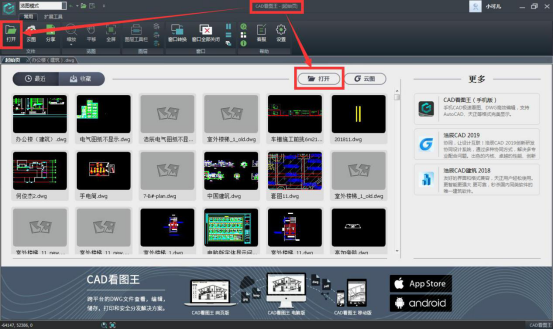步驟一:在【浩辰CAD看圖王電腦版】中【打開】需要分享給別人查看的圖紙。