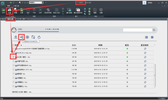 步驟四:圖紙上傳到【我的云圖】之后,點擊圖紙前的小方框對其進行勾選,選中之后點擊上方的【分享】按鈕,準備進行圖紙分享。