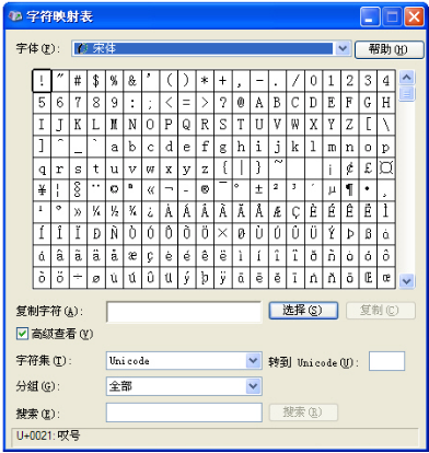 單擊菜單底部的“其他…”,還可以彈出“字符映射表”對話框,如下圖所示。