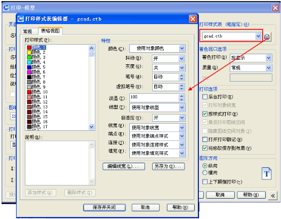 打印樣式可分為顏色相關打印樣式表(*.CTB)和命名打印樣式表(*.STB)兩種模式。