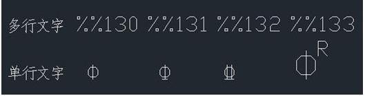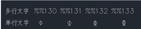 這個字體,不同級別鋼筋符號的輸入方法分別是%%130、%%131、%%132、%%133,另外注意這些符號輸入在多行文字里是不起作用的,如下圖所示。