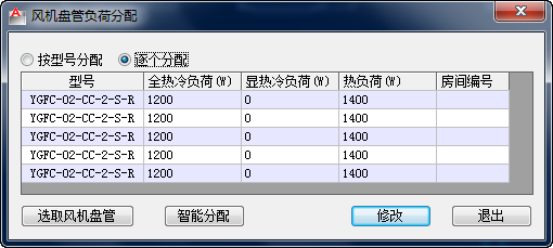 框選需要進(jìn)行負(fù)荷分配的風(fēng)機(jī)盤管,彈出對(duì)話框,如圖示: