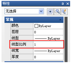 另外一個線型比例設置就是屬性框(CTRL+1)中選擇對象的比例設置了,在屬性框中可以調整選中對象的線型比例,圖形在圖中顯示的線型比例是這個比例乘上全局比例因子,如下圖所示。