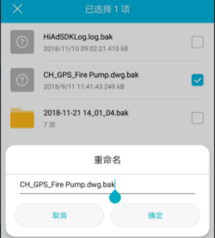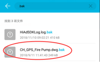 在用浩辰CAD看圖看圖時,如果圖紙打開后保存時出現閃退,會在系統目錄下生成同名的.bak文件,您可以在手機里找到同名的.bak文件,然后通過重命名恢復。