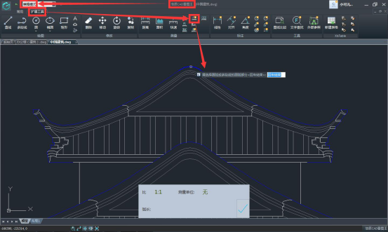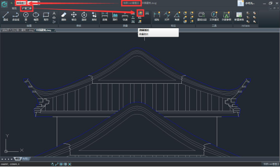 步驟二:在編輯模式,擴展工具欄中點擊“測量弧長”命令。