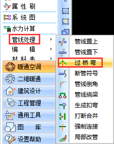 菜單:[智能水路] ]→[管線處理]→[過橋彎]