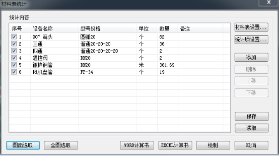 說明:此操作可參照材料表統計部分內容。