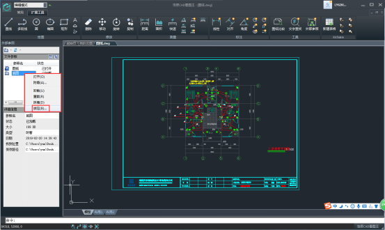 鼠標放在參照文件名稱上,右鍵可以進行:打開、附著、拆離、重載、卸載、綁定等操作。