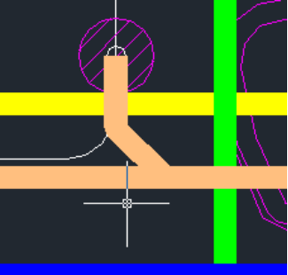 用戶(hù)執(zhí)行命令,然后按照提示分別選擇需要生成斜彎兩段相交管線,軟件會(huì)生成一段虛擬斜彎,由用戶(hù)指定斜彎的方向后軟件自動(dòng)在選定位置插入斜彎。
