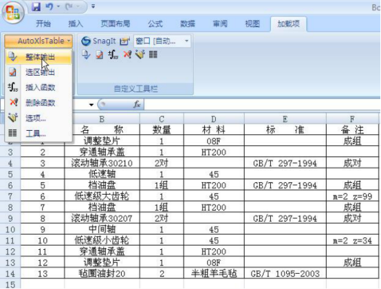選擇 AutoXlsTable 下拉列表中的“整體輸出”;