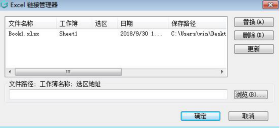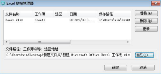 選擇欲與表格對(duì)象建立連接的 XLS 文件,并點(diǎn)擊“打開”,返回鏈接管理器對(duì)話框;