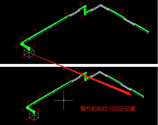 默認(rèn)編號(hào)順序?yàn)閺氖级讼浠蛘叱跏祭L制段開始編號(hào)。而如果需要自行選擇開始編號(hào)的段,可以先將“手動(dòng)排序”選框打鉤,再進(jìn)行框選或全選編號(hào)。