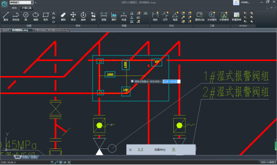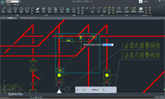 移動(dòng)鼠標(biāo)就可以直接顯示測(cè)量水平距離、垂直距離和選擇兩條線的角度的數(shù)值。