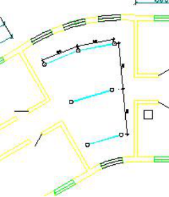 用戶在布置過程中可把一個(gè)不規(guī)則的房間劃分成幾個(gè)規(guī)則的矩形小房間(如圖3-3-4為一個(gè)防火分區(qū)),只需先后點(diǎn)取矩形房間的對角,便可實(shí)現(xiàn)噴頭的均勻布置。布置時(shí)可動(dòng)態(tài)顯示噴頭距端墻以及相鄰噴頭的間距。