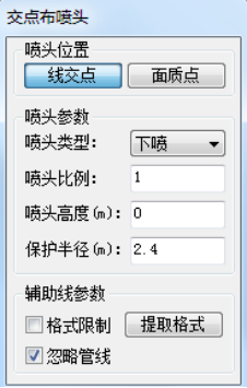 用戶運(yùn)行【消防】菜單中的【交點(diǎn)噴頭】命令,彈出如圖對話框: