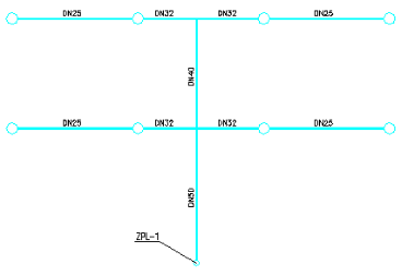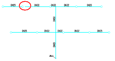 用戶確定好危險(xiǎn)等級(jí)及標(biāo)注字高,點(diǎn)取噴淋干管靠近立管的一端,軟件便會(huì)一次性標(biāo)注這個(gè)系統(tǒng)所有管線的管徑。(如圖)