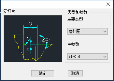浩辰CAD機(jī)械軟件中調(diào)用【浩辰機(jī)械(M)】→【構(gòu)造工具(S)】→【砂輪越程槽(A)】或輸入“YCC”命令,就會(huì)彈出如下圖所示的對(duì)話框。