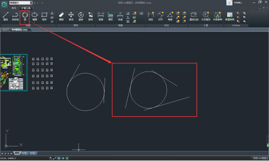 3、按照提示在圖紙指定對象與圓的第一個相切點;