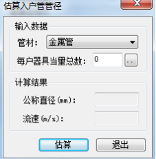 用戶點擊【估算住宅入戶管管徑】按鈕彈出如圖對話框: