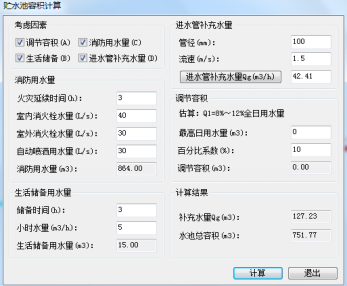 設定貯水池相應參數,點擊【計算】按鈕,便可計算出貯水池總容積。http://m.ledyichaoda.com/