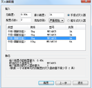 用戶只需確定滅火器形式和配置點數,然后點擊【配置】便可得到每個配置點的配置量、滅火器型號和數量。