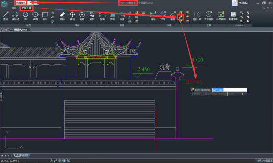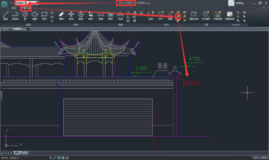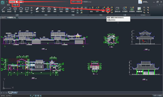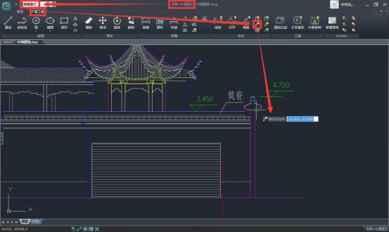 步驟二:在編輯模式,擴(kuò)展工具欄中選擇坐標(biāo)標(biāo)注功能。