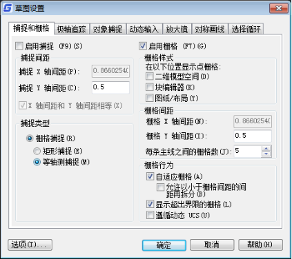 注:在繪制等軸測投影圖時,必須將捕捉類型設置為等軸測捕捉。