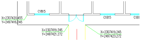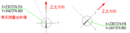 請輸入基準坐標測量坐標值或[圖上拾取坐標數字(A)]: 2307435.257,2497379.950 鍵入該點的測量坐標值回車,圖上顯示對應點的坐標符號引線;